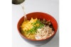 3. ごはんを茶碗に半分くらい入れ、その上にすべての具材を適量のせる