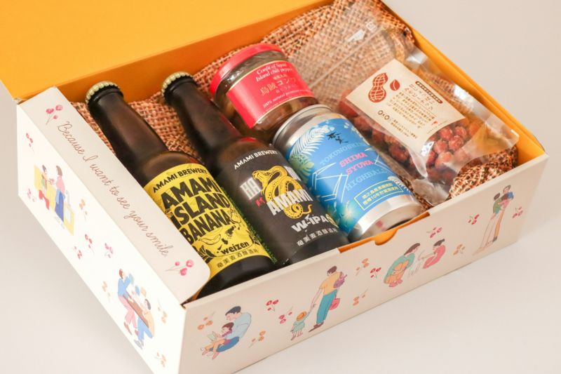 奄美の豊かな自然が育んだ素材で作るクラフトビール、黒糖焼酎のハイボール缶に、おつまみをセットしたギフトセットです。