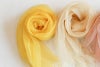 色々な条件で色、色味が変わってくる草木染め。絶妙なやさしい色合いのストールは、同じ染め具合のものは二つと無く、どれも一点もの。