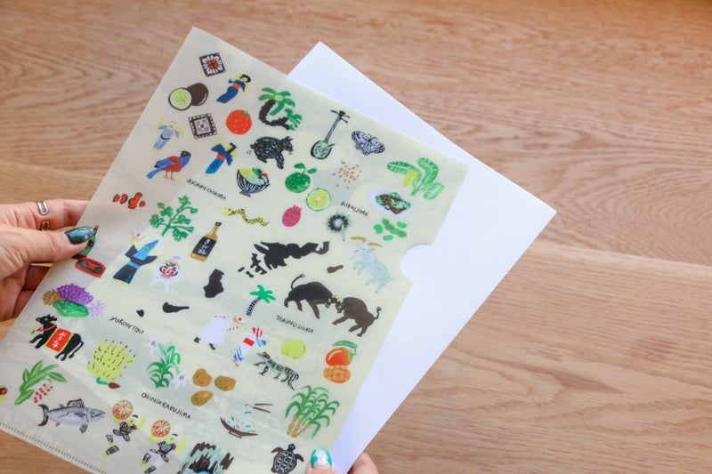 奄美群島5島のイラストが詰まったクリアファイルは、シマを象徴するアイテムがポップに描かれていて、遊び心満載ながらも、シマを知ることができる、優れもの!
